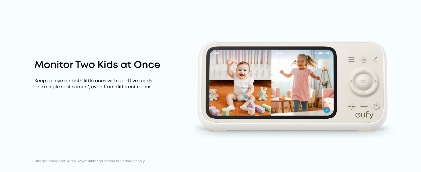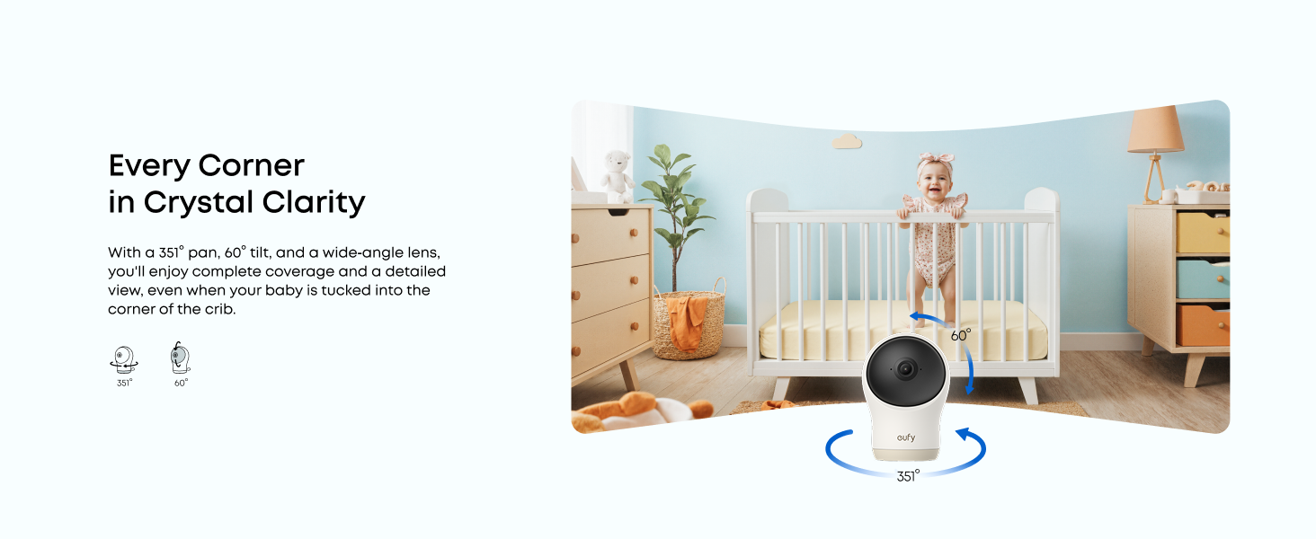 The Eufy Baby Monitor C10 helps Filipino parents stay close to their baby wherever they are. With 2K HD clarity, panoramic coverage, and intelligent alerts, you can monitor your child safely from the living room, kitchen, or even while working abroad. The camera pans across the entire nursery and zooms in when you need a closer look. You can even view two babies on split screen, making it ideal for twins or siblings.